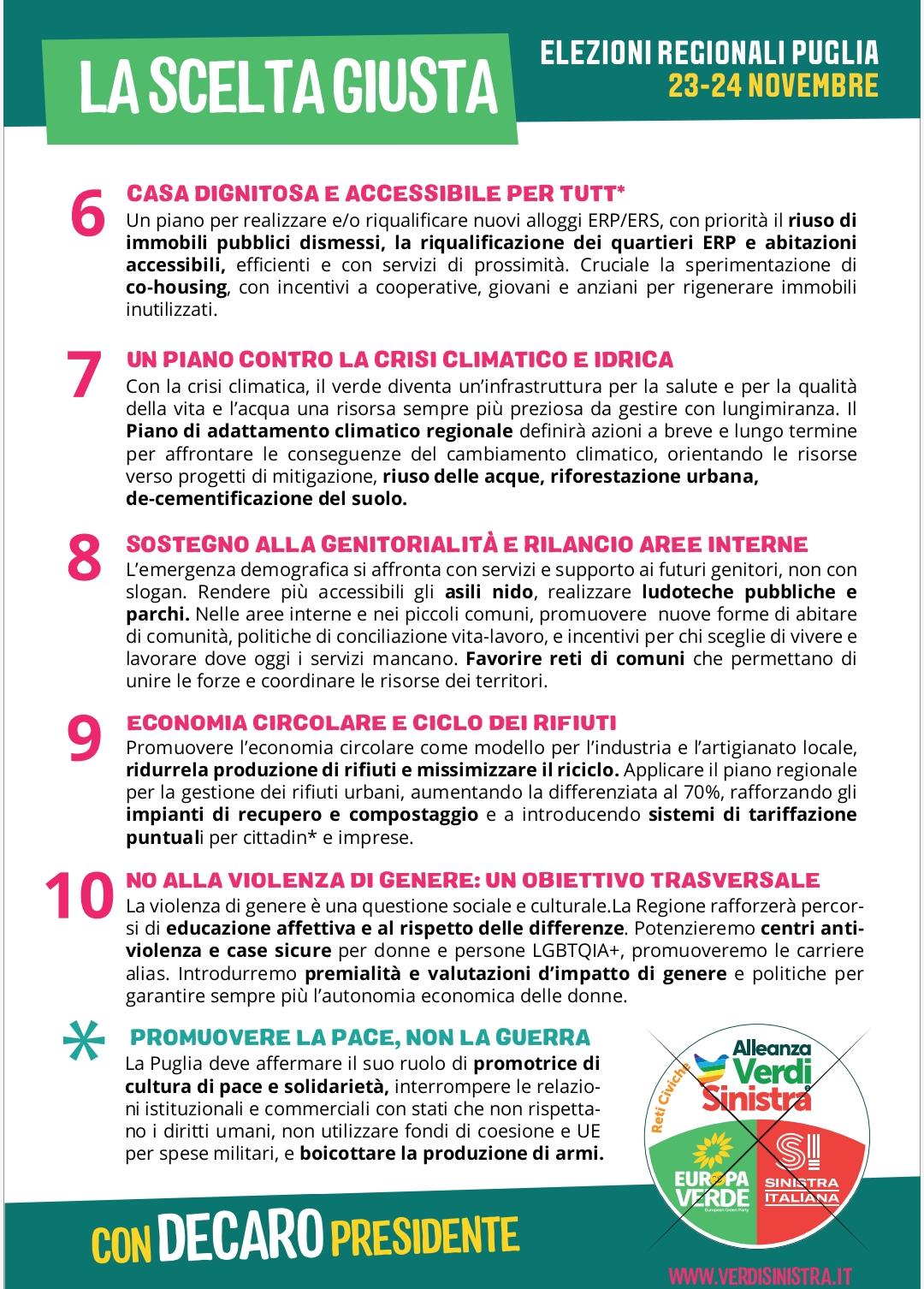 Il documento programmato elettorale di Alleanza Verdi Sinistra per le elezioni regionali in Puglia