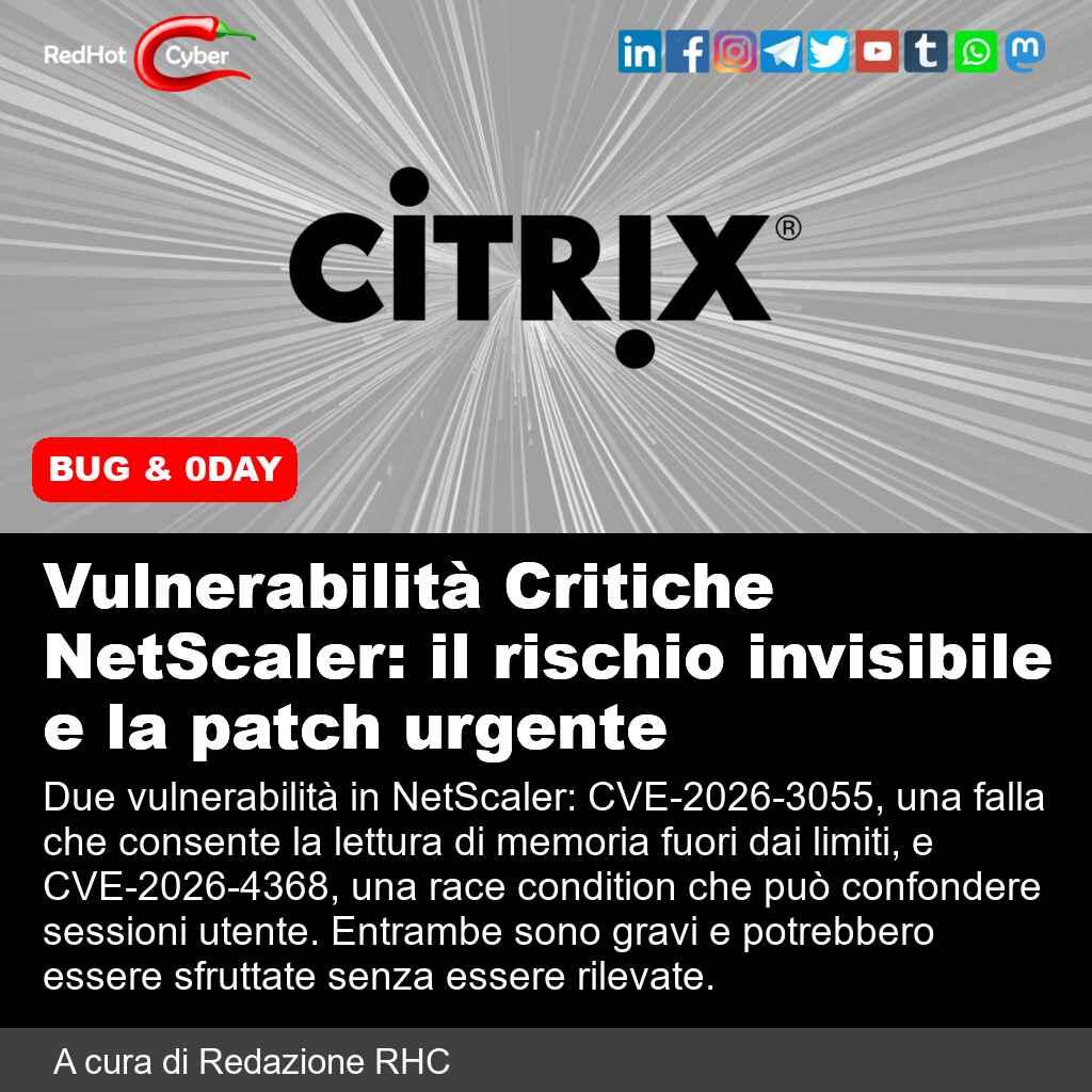 #redhotcyber #news #cybersecurity #hacking #netscaler #vulnerabilita #sicurezzainformatica #cve2026 #malware