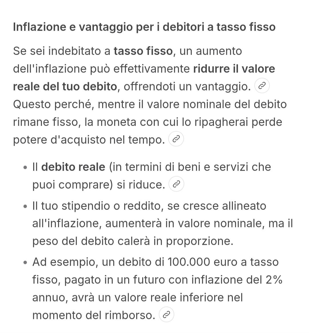 Banalità economiche. La cosa migliore per una persona indebitata a tasso fisso è sperare nella perdita del valore del debito da restituire, sperare nella sua svalutazione in conseguenza dell'aumento dell'inflazione. Per chi è indebitato, la soluzione migliore per ridurre il debito è ridurre il valore del debito e svalutarlo con l'aumento dell'inflazione. Poiché guerre e crisi energetiche aumentano l'inflazione e siccome gli USA hanno un debito enorme, ci vuole poco a fare 1+1. Le IA lo sanno.