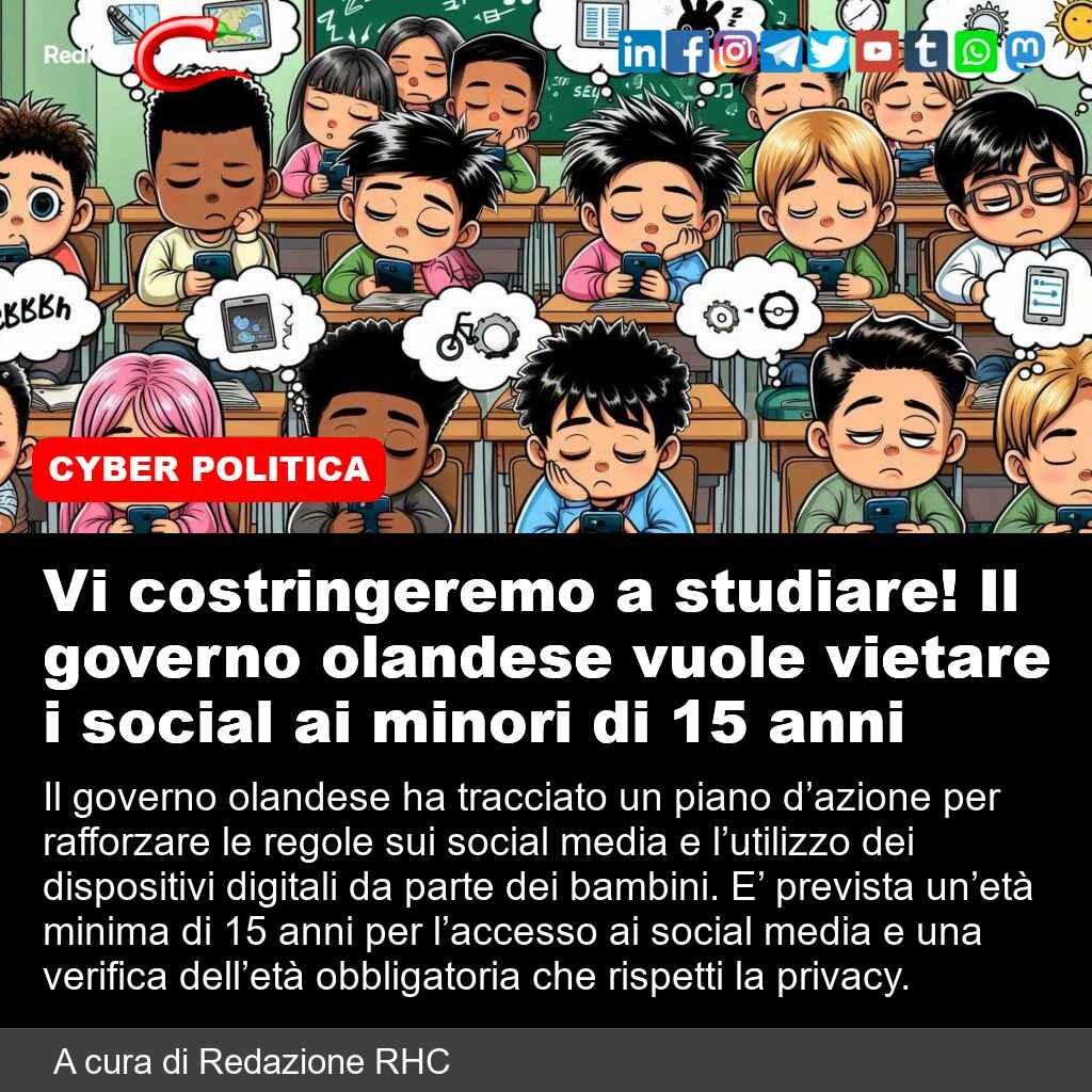 📌 Link all'articolo : https://www.redhotcyber.com/post/vi-costringeremo-a-studiare-il-governo-olandese-vuole-vietare-i-social-ai-minori-di-15-anni/