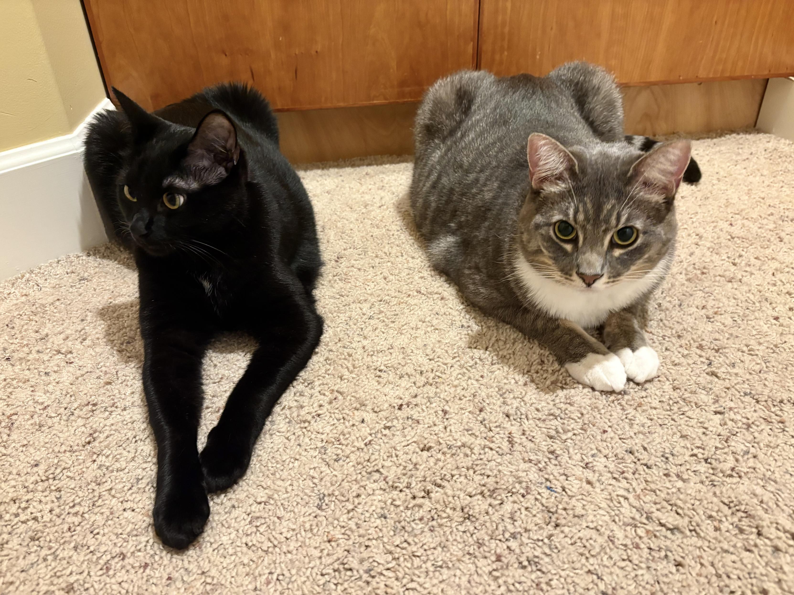 @faerye Once (2000's) i had 3 cats, and 2 of them always wanted what the other had or was doing. So: 1 sleeping in a particular chair: 2 wanted also in that chair > catfight. 2 eating from 1 (of 3) bowls, 1 wanted to eat from that very same bowl. Here's a photo of me (2000), where 1 (the black cat) was on my lap, and 2 (the tabby) wanted that as well.... ๐
