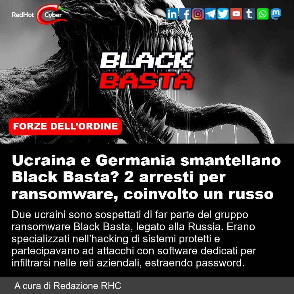 📌 Link all'articolo : https://www.redhotcyber.com/post/ucraina-e-germania-smantellano-black-basta-2-arresti-per-ransomware-coinvolto-un-russo/