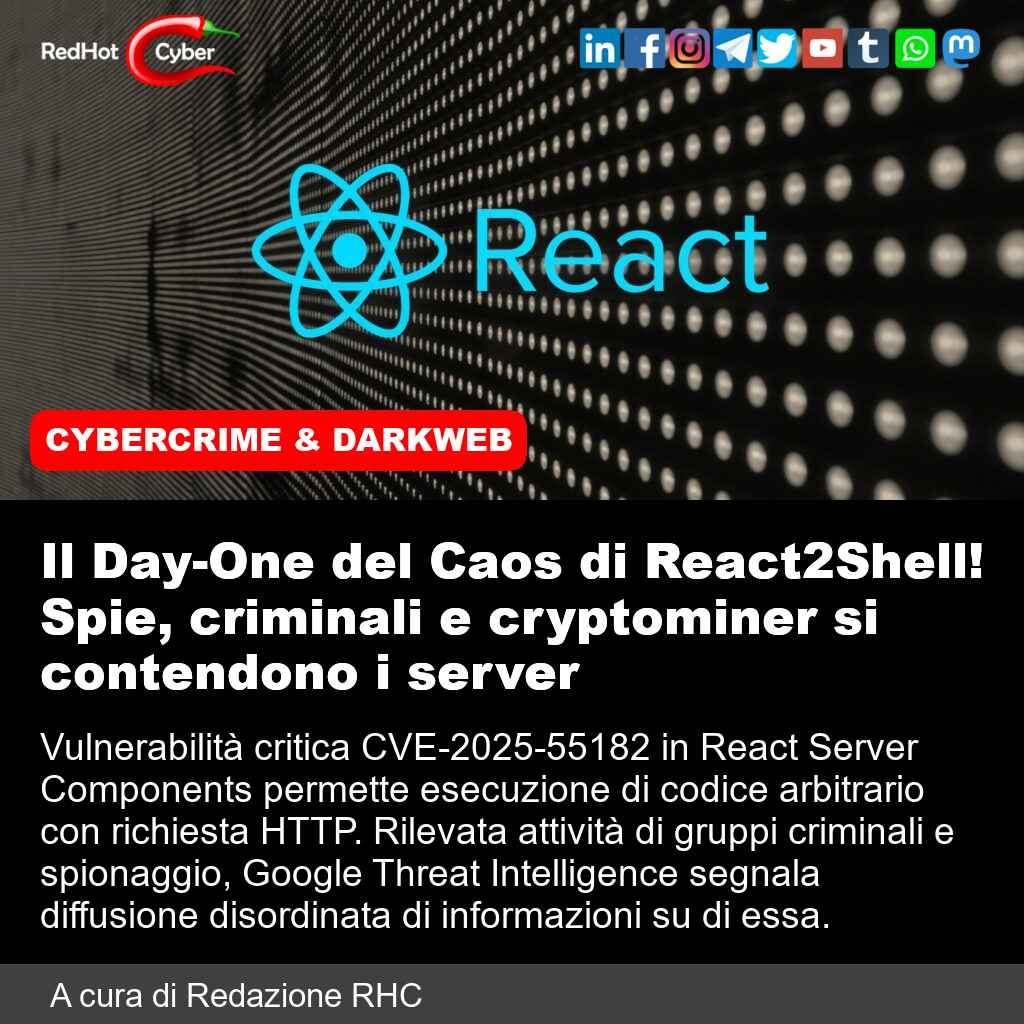 📌 Link all'articolo : https://www.redhotcyber.com/post/il-day-one-del-caos-di-react2shell-spie-criminali-e-cryptominer-si-contendono-i-server/