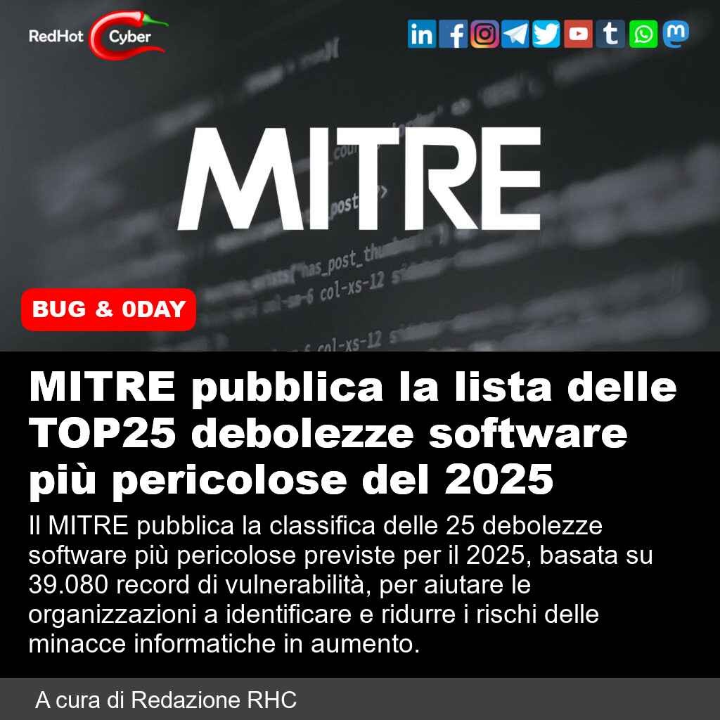 #redhotcyber #news #cybersecurity #vulnerabilitàsoftware #minacceinformatiche #sicurezzainformatica #MITRE