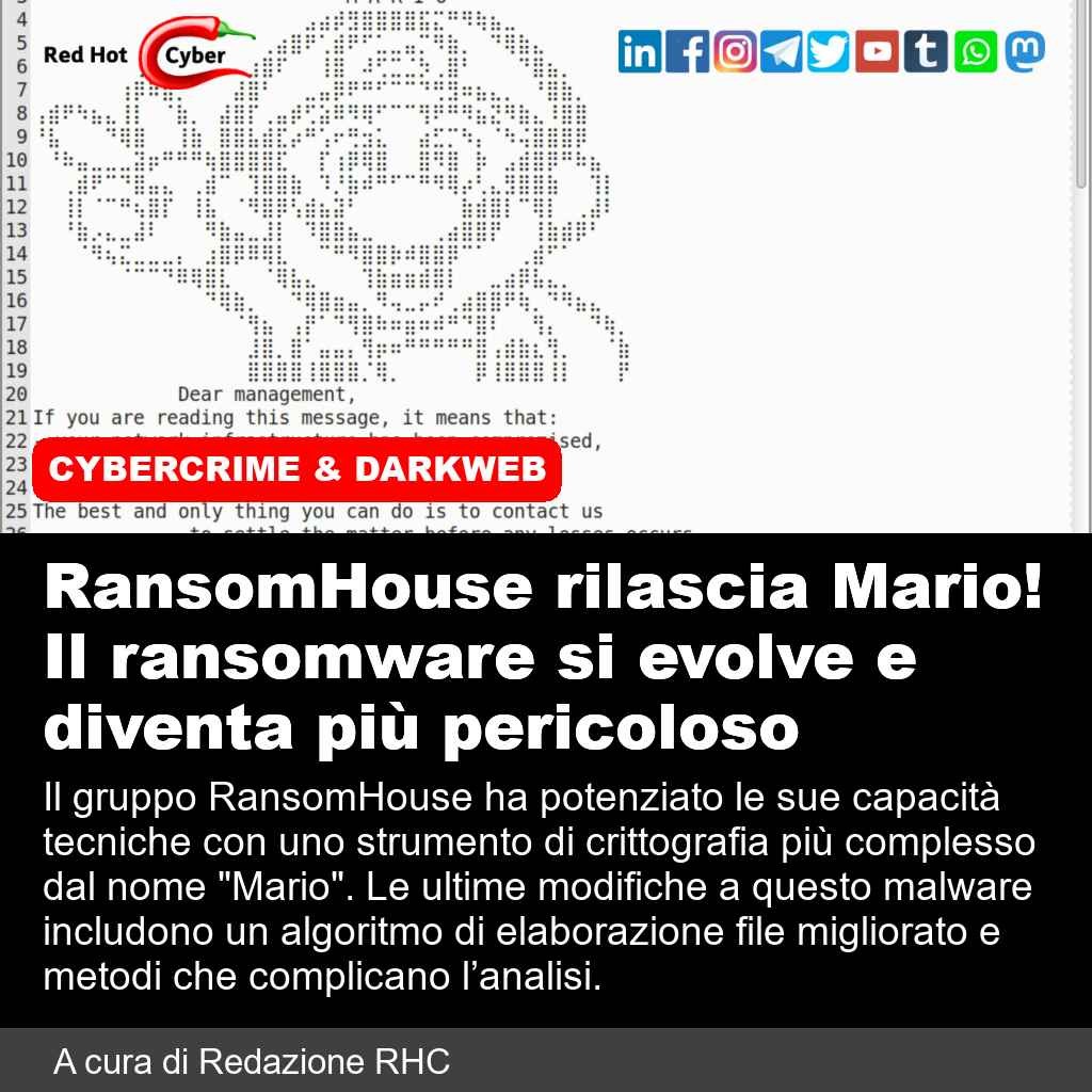 ๐ Link all'articolo : https://www.redhotcyber.com/post/ransomhouse-rilascia-mario-il-ransomware-si-evolve-e-diventa-piu-pericoloso/