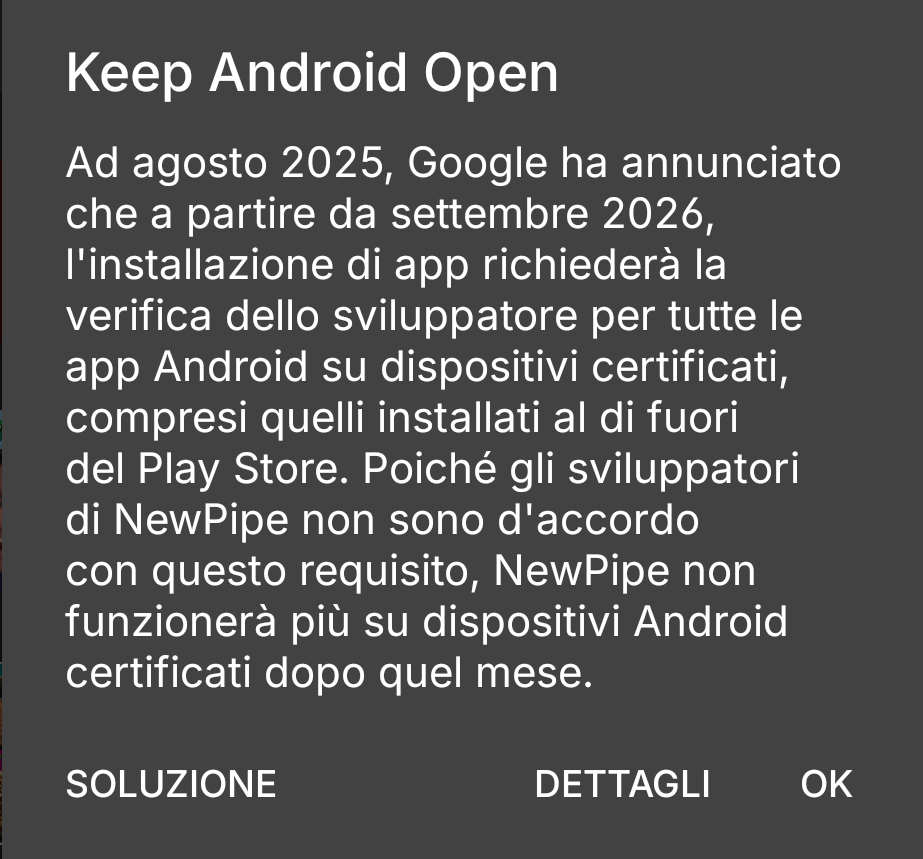 The more a company becomes closed the more questions should be asked of it. I'd forgotten how near the whole Google-demands-personal-ID for Android devs was. I'm not one, but I use F-Droid.#Android, and a couple of other aspects the family uses, are things I'm unsure how to de-Google, without en-Apple-ing or en-Amazoning.Anyway, this post is to promo the #KeepAndroidOpen page. It's all I can do at the moment. @keepandroidopen https://keepandroidopen.org/