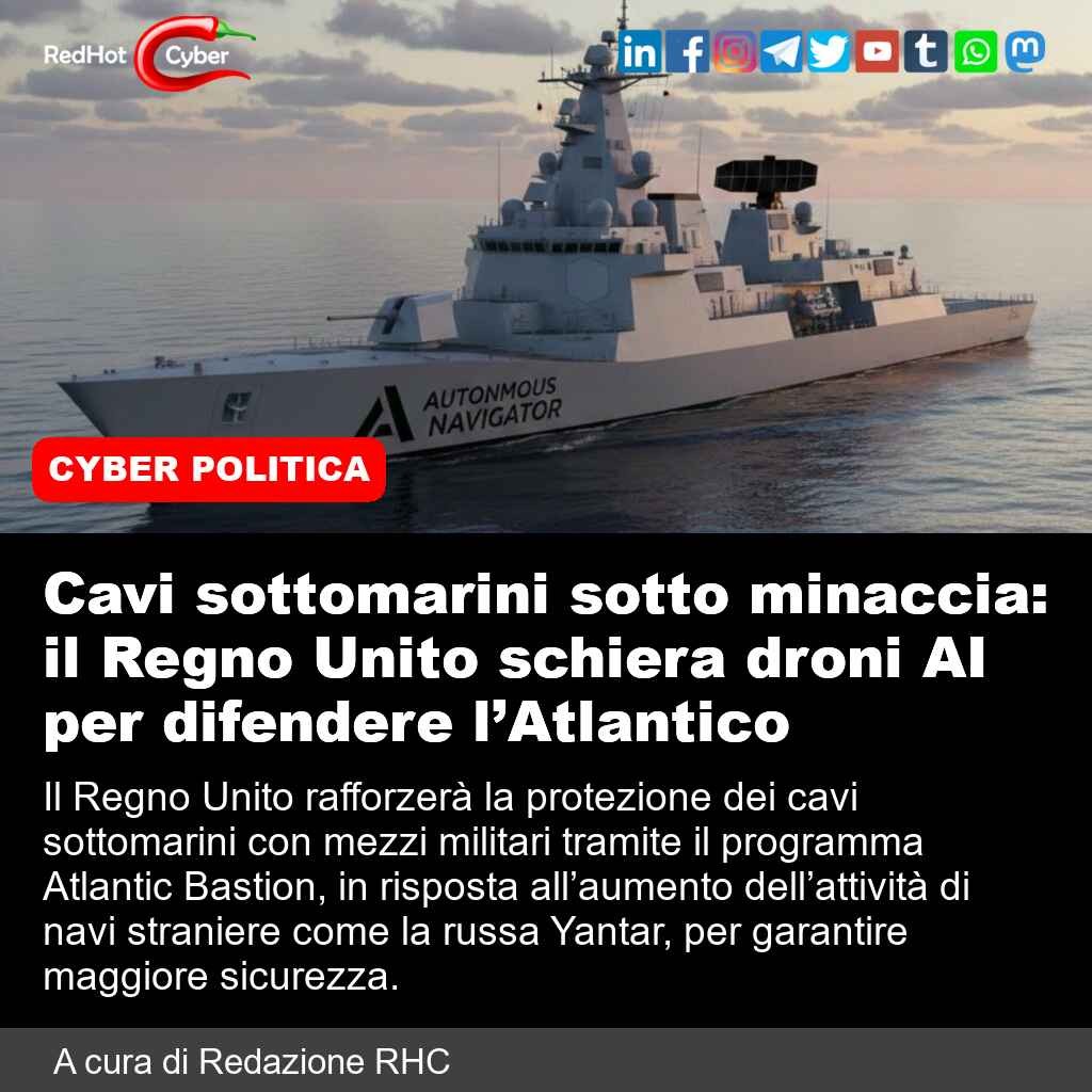 📌 Link all'articolo : https://www.redhotcyber.com/post/cavi-sottomarini-sotto-minaccia-il-regno-unito-schiera-droni-ai-per-difendere-latlantico/