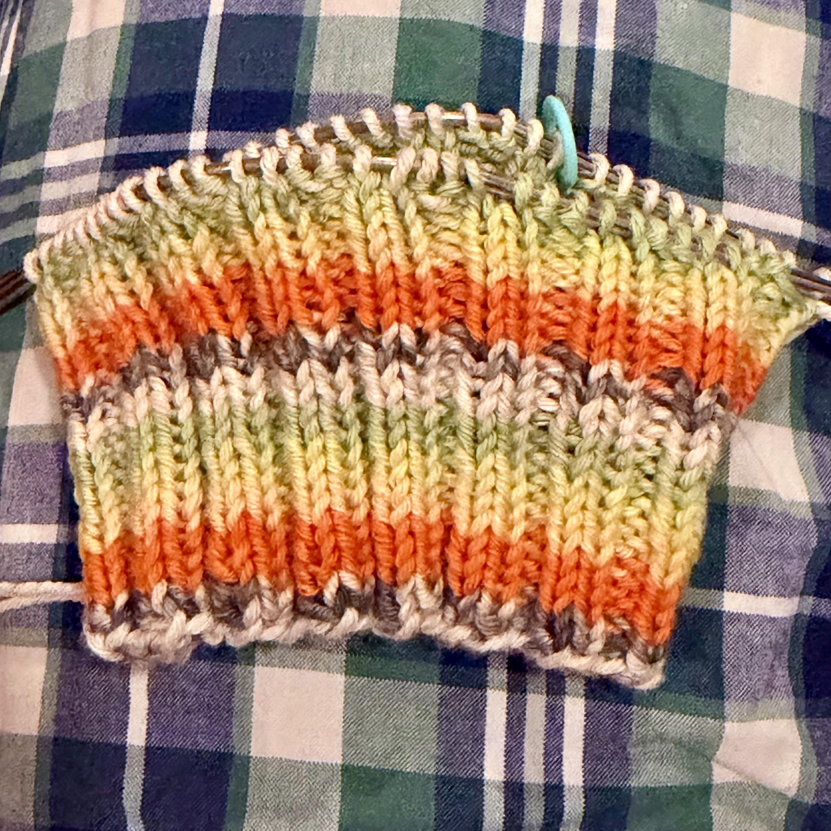 After the hard work of the Rubra cardigan, I've cast on a couple of easier projects. Today's knitting is Piccolo Fiore by Claudia Q. This is a great pattern to try if you're new to stranded colourwork, because there's only eight rows of two colour knitting at a time. The original pattern uses 4ply mohair, which I am hideously allergic to, so I'm knitting mine in Drops Flora instead. Colours are Midnight Shadow and Caramel. @knitting #knitting https://www.ravelry.com/patterns/library/piccolo-fiore