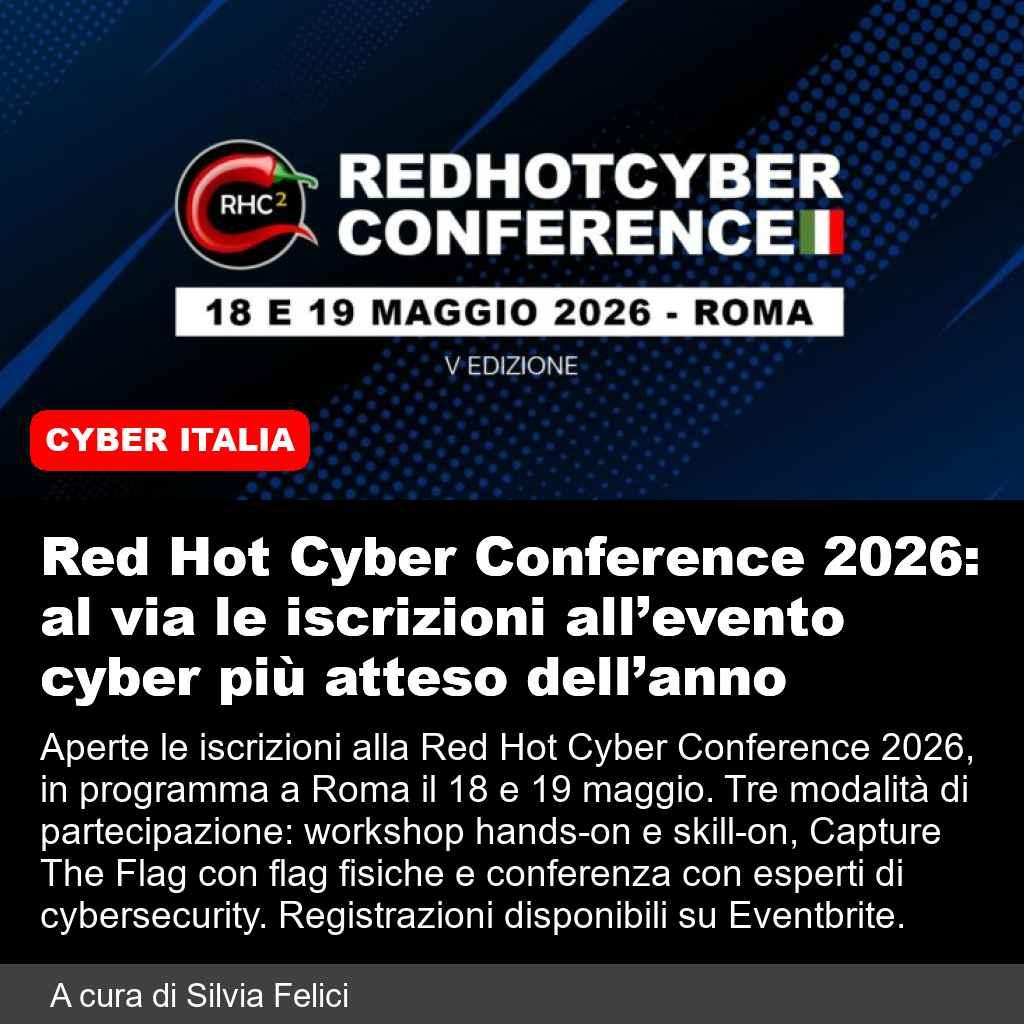 📌 Link all'articolo : https://www.redhotcyber.com/post/red-hot-cyber-conference-2026-al-via-le-iscrizioni-allevento-cyber-piu-atteso-dellanno/