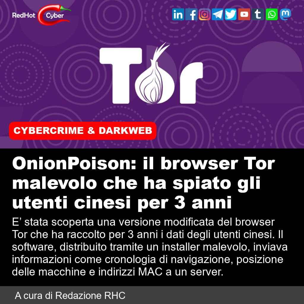 OnionPoison: il browser Tor malevolo che ha spiato gli utenti cinesi per 3 anni📌 Link all'articolo : https://www.redhotcyber.com/post/onionpoison-il-browser-tor-malevolo-che-ha-spiato-gli-utenti-cinesi-per-3-anni/#redhotcyber #news #cybersecurity #hacking #torbrowser #malware #dataprivacy #sicurezzainformatica #browser
