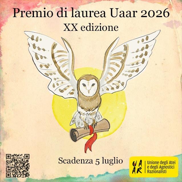 Il Premio #laurea #Uaar compie vent'anni! Vi siete laureati dal primo luglio 2025 con una tesi su questioni come laicità , diritti civili, filosofie non religiose? Avete tempo fino al prossimo 5 luglio per inviarci il vostro elaborato! 👇https://blog.uaar.it/2026/04/22/vent-anni-di-premio-laurea-uaar/ ‎