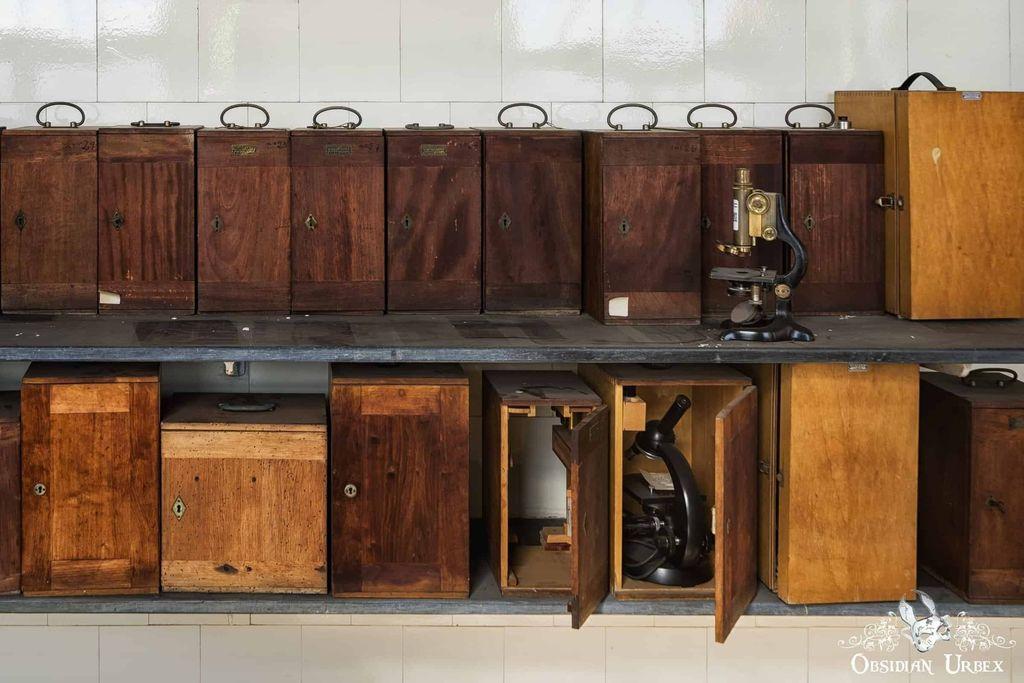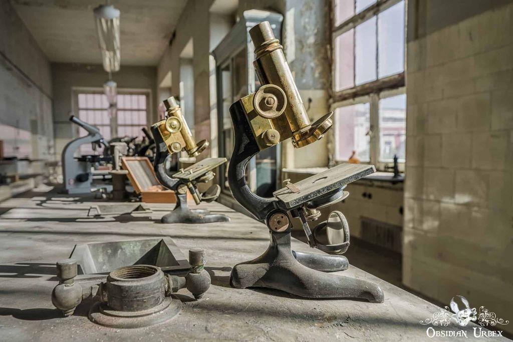 This institute once played a key role in scientific work in the field of disease research. Today it sits locked and unused, one of many shuttered buildings. Inside, the laboratories with microscopes, glass slides, test tubes, and chemical bottles.