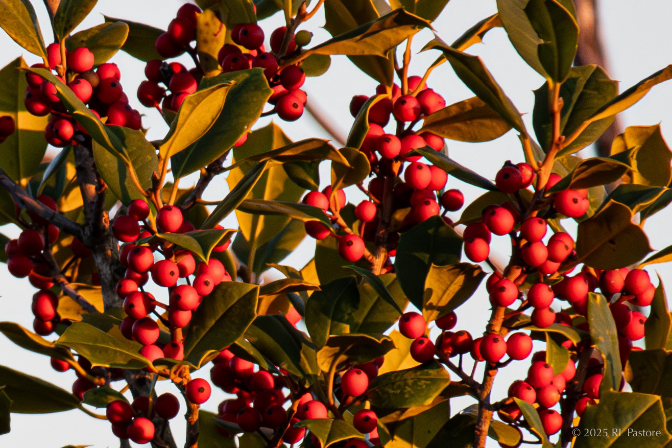 Looks like my holly, jolly Christmas will be a lot more hollier this year. I took these during the last few minutes of daylight, which washed out the greens a bit.