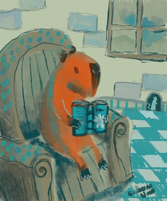 • capybara reading a good book