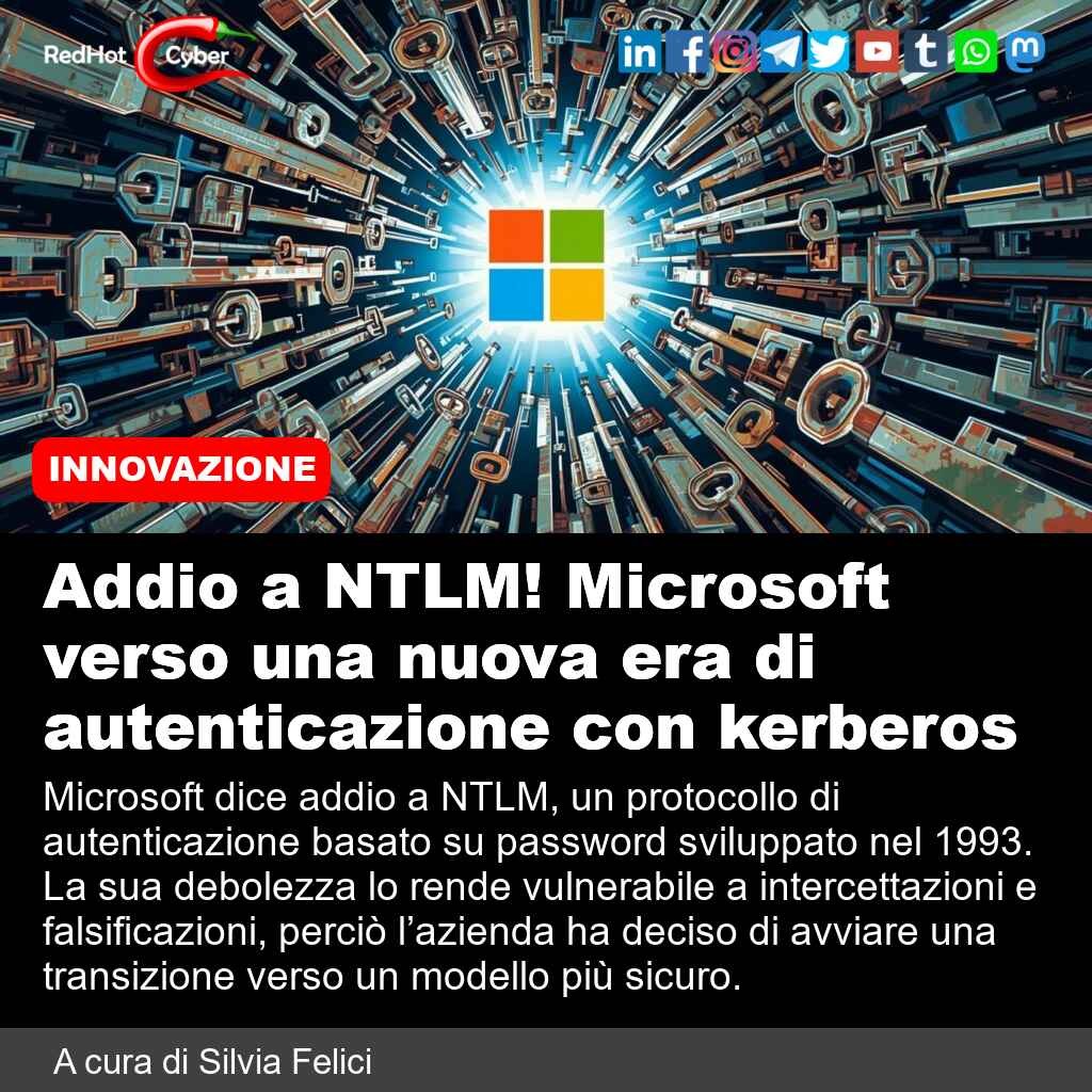 📌 Link all'articolo : https://www.redhotcyber.com/post/addio-a-ntlm-microsoft-verso-una-nuova-era-di-autenticazione-con-kerberos/