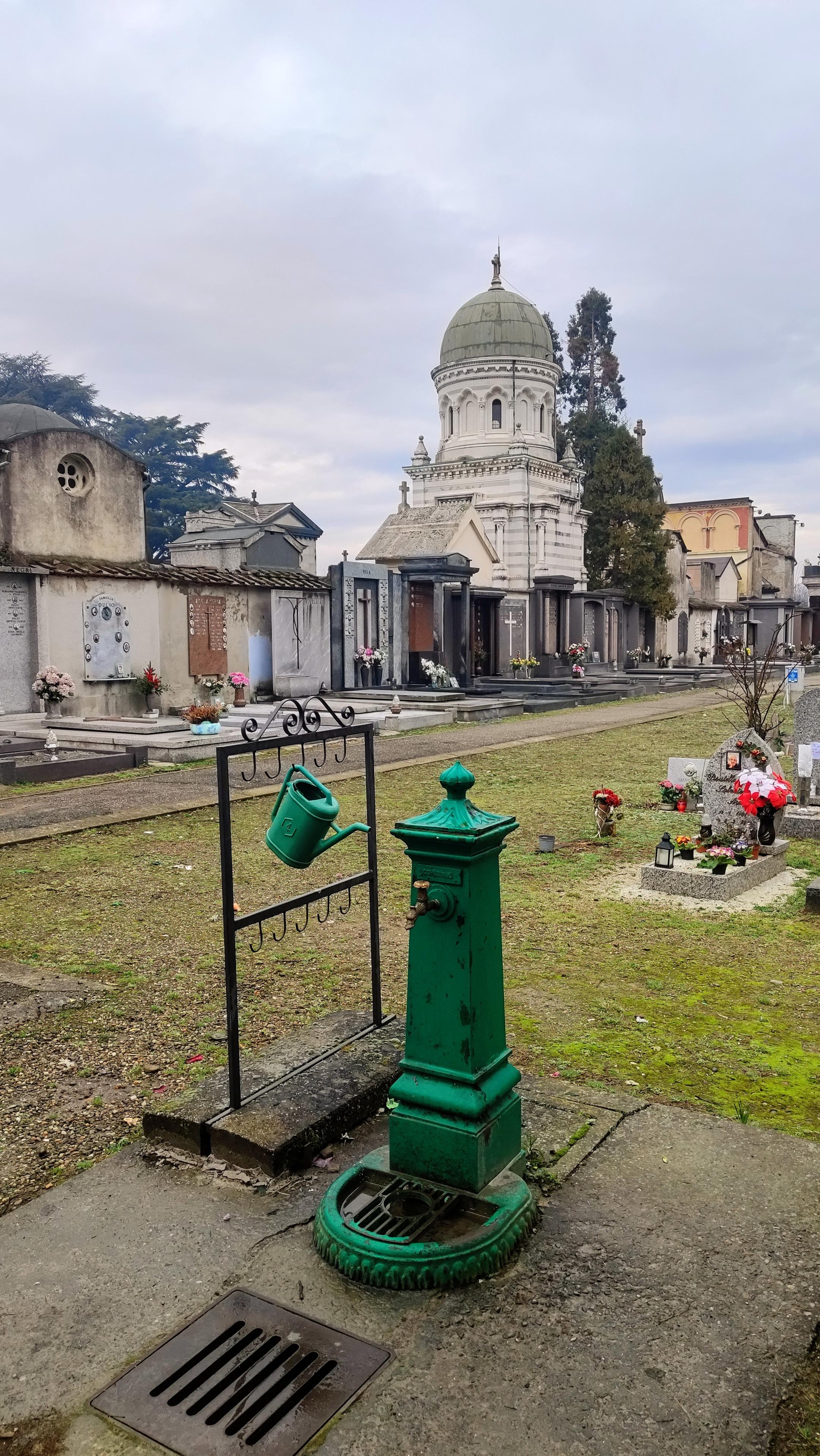 Anche qui qualche anno fa hanno messo le rastrelliere per gli innaffiatoi, con i lucchetti apribili con moneta (tipo carrelli del supermercato), ma li hanno scassinati quasi tutti.