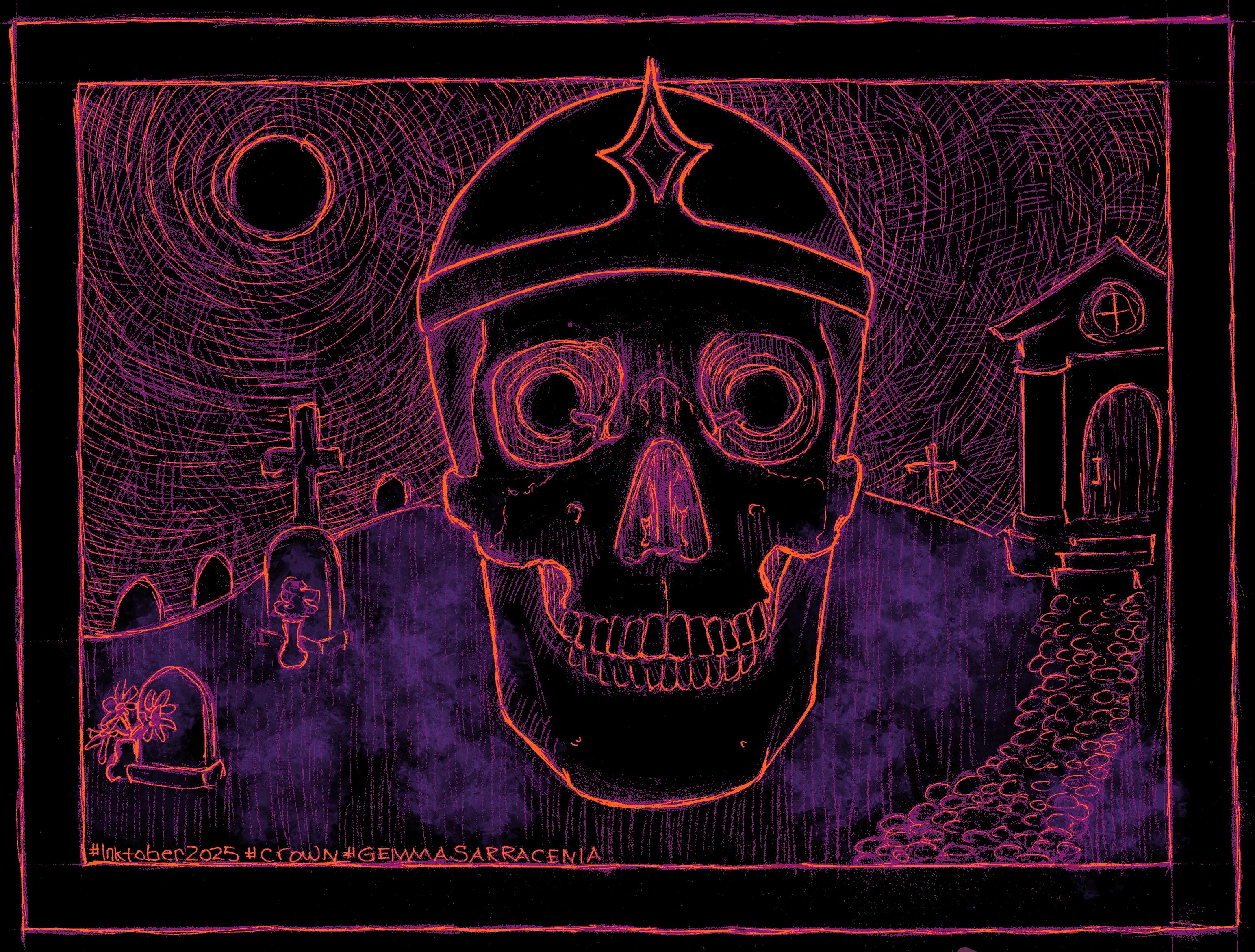 inktober2025crownhalloweenspookyseasonart