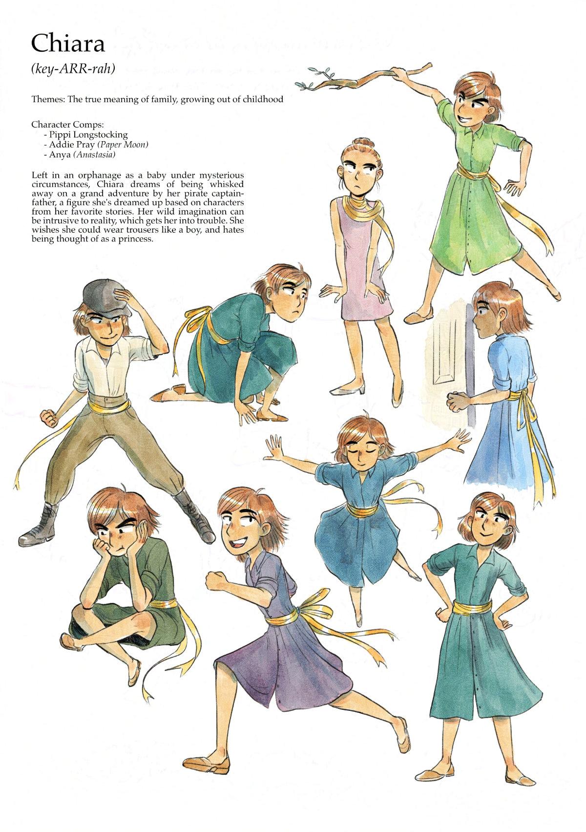 Redid my character sheet for Chiara since my art style evolved a bit since last year'nI love drawing spunky orphan-gals with a call to adventure#MastoArt #comics #CharacterDesign