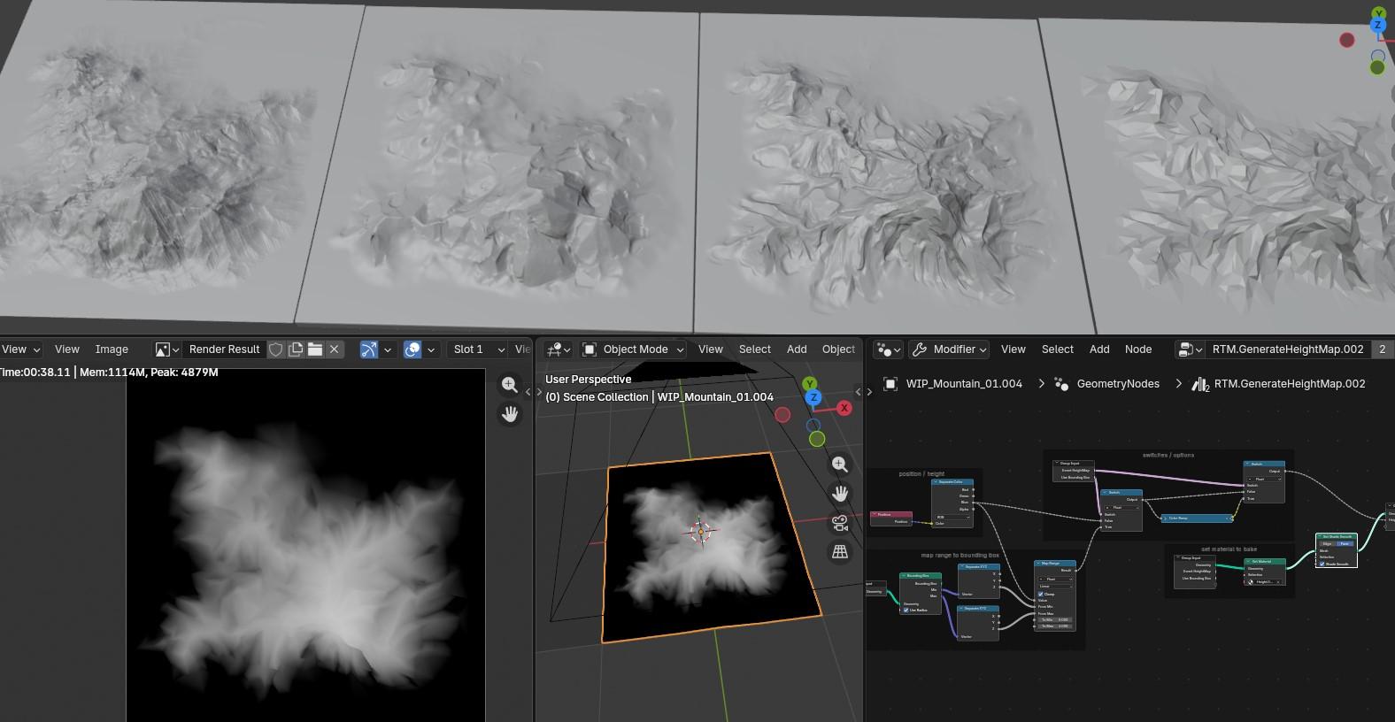 for the mountains as example I first used to create this base terrain in #blender with this geometry nodes setup, then sculpted it a bit and in the end...