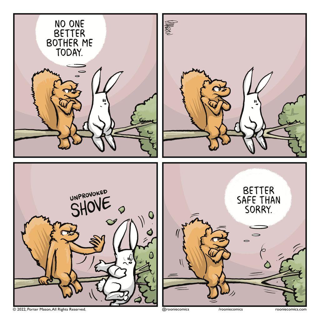 Don't take chances with a bad mood. | More comics: https://rooniecomics.com/comics/bother