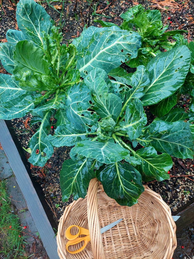 We started with a rainy walk. Picked the last of the collards. Started a pot of beans. Made a doggie birthday cake for Josie. Happy birthday, Josie!
