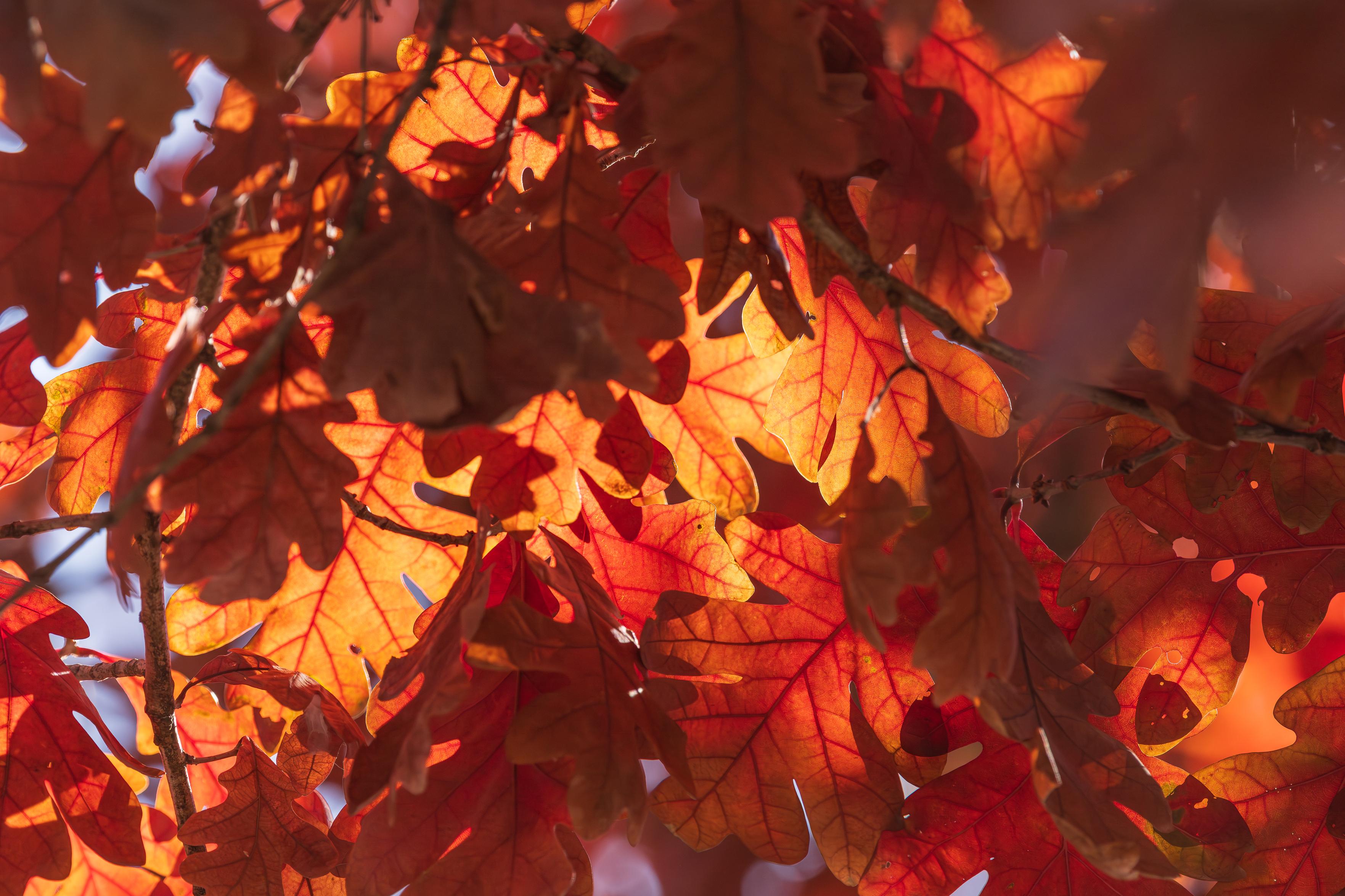 This particular oak (white oak ,I think) keeps its leaves in winter. It's located in a neighborhood I frequent and the best time to walk by is when the sun is shining though the translucent leaves.