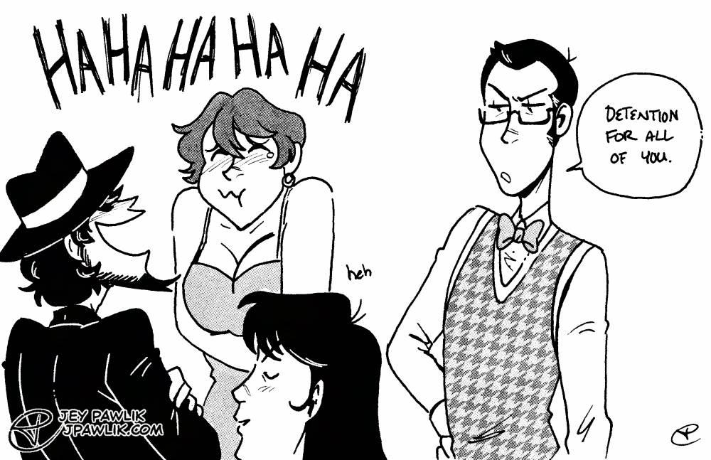 Some more https://lupiniii.club/index.php prompts from earlier this year! Prompts: Zenigata in disguise, Lupin doing Fujiko's nails, Jigen hiding something under his hat, Lupin disguised as a professor.