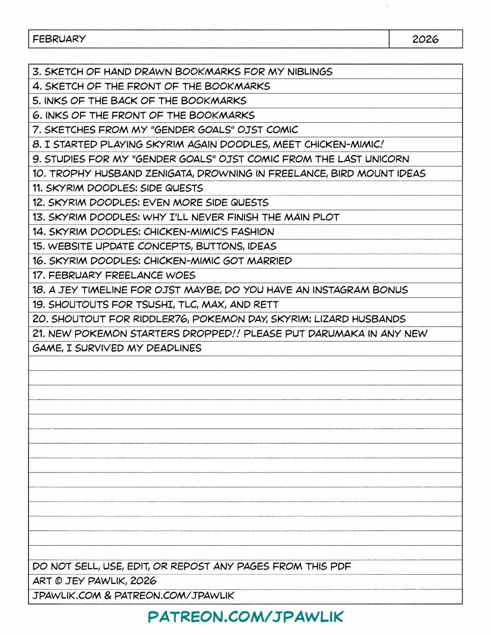 This month's sketchbook is here https://www.patreon.com/posts/151821034/