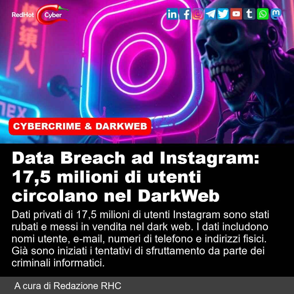 #redhotcyber #news #cybersecurity #hacking #instagram #datirubati #darkweb #sicurezzainformatica #furatodidati #protezionedatidigitali #informaticacriminosa #sicurezzaonline #datipersonali #privacy