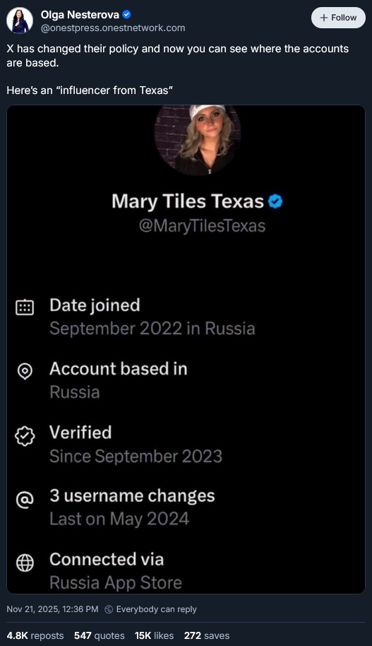 people should know that the big platforms like X, Instagram, and Reddit are now **loaded** with bots running influence campaigns on behalf of brands, celebrities, governments, etc. comments like "as a [identity], my take is that..." are pretty persuasive! and these campaigns work **even when you know they exist**