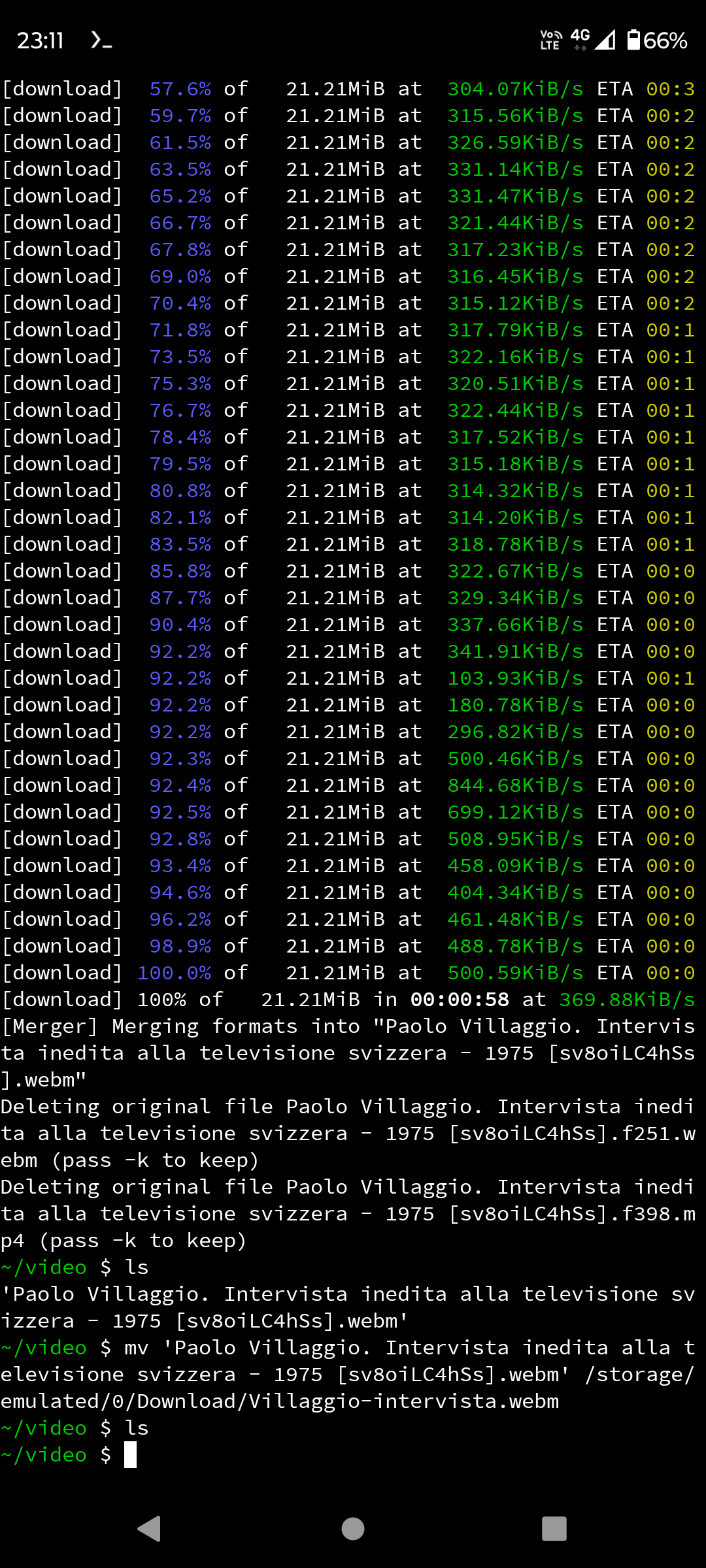 Usare yt-dlp per scaricare video dall'emulatore di terminale Linux su android e lavorarli con ffmpeg da riga di comando.