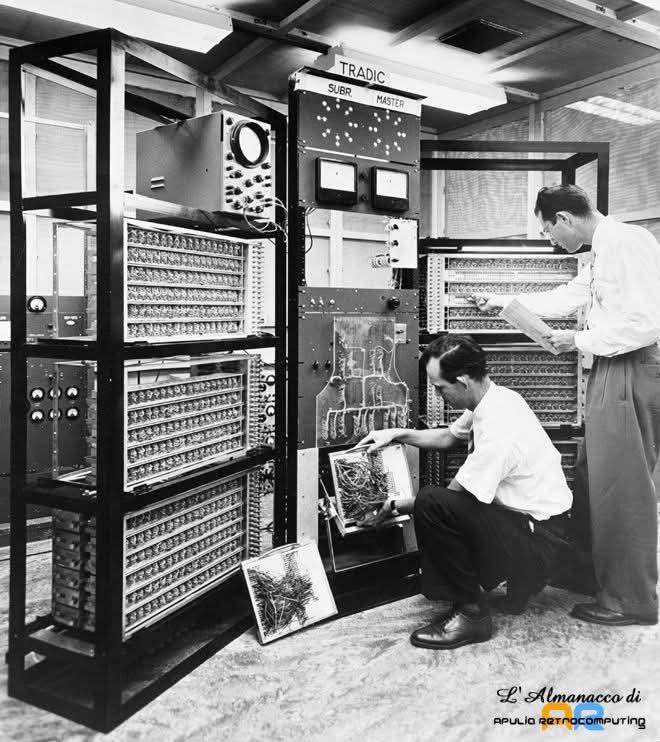 I Bell Laboratories annunciano il completamento del TRADIC, uno dei primi computer interamente a transistor. Con circa 800 transistor e meno di 100 watt di consumo, dimostra i vantaggi rispetto ai sistemi a valvole. Nel 1957 Siemens ne realizzerĂ  una versione commerciale, aprendo la strada ai computer della nuova generazione elettronica.