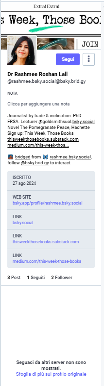 Dal tombino di Bluesky, attraverso il bridge fed.brid.gy fiumi di liquami hanno iniziato a scorrere nel fediverso, come mosra l'esempio in figura. Com'è che mi ritrovo questa roba nella timeline home, visto che non la seguo, non è seguita da nessuno di sociale.network, e ha solo 2 followers visibili dal fediverso? E soprattutto, come ci dobbiamo regolare con i brigde che ci impestano con i contenuti monetizzati da bluesky?