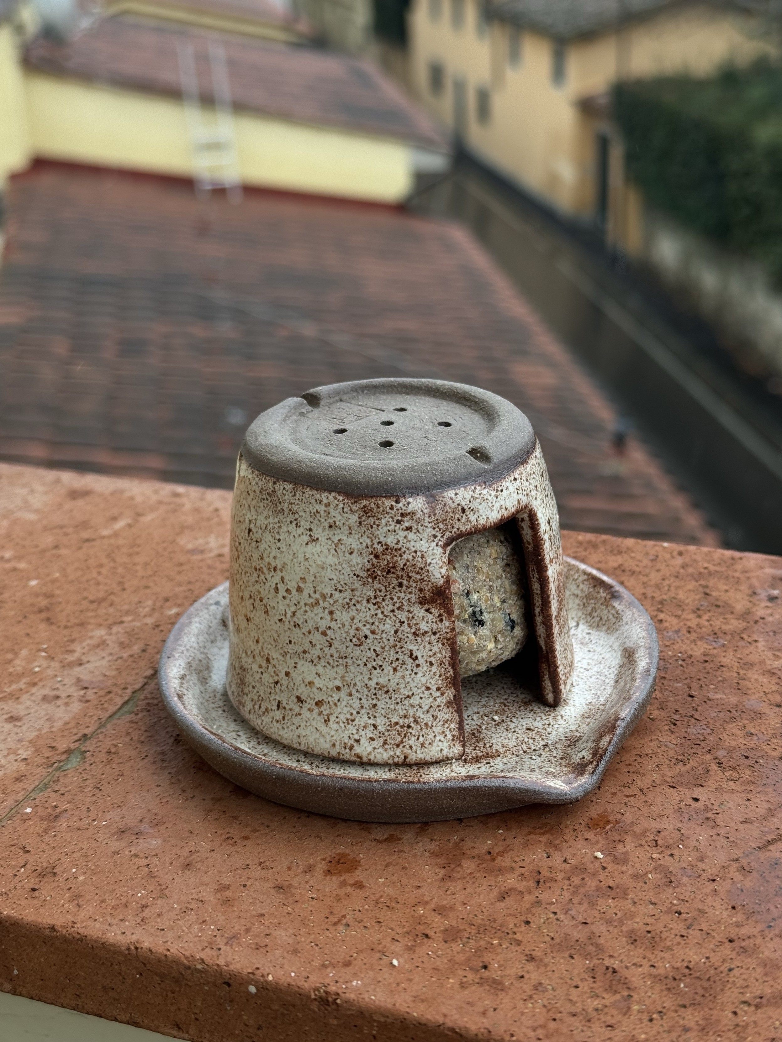 @LaVi ho tolto il coperchio e spezzato la palletta sul piattino: non ho proprio alcun supporto dove eventualmente appendere la retina o il trespolino apposito... vediamo stasera se qualcuno si è mangiato qualcosa (le gazze di sicuro 🤦🏻♀️)