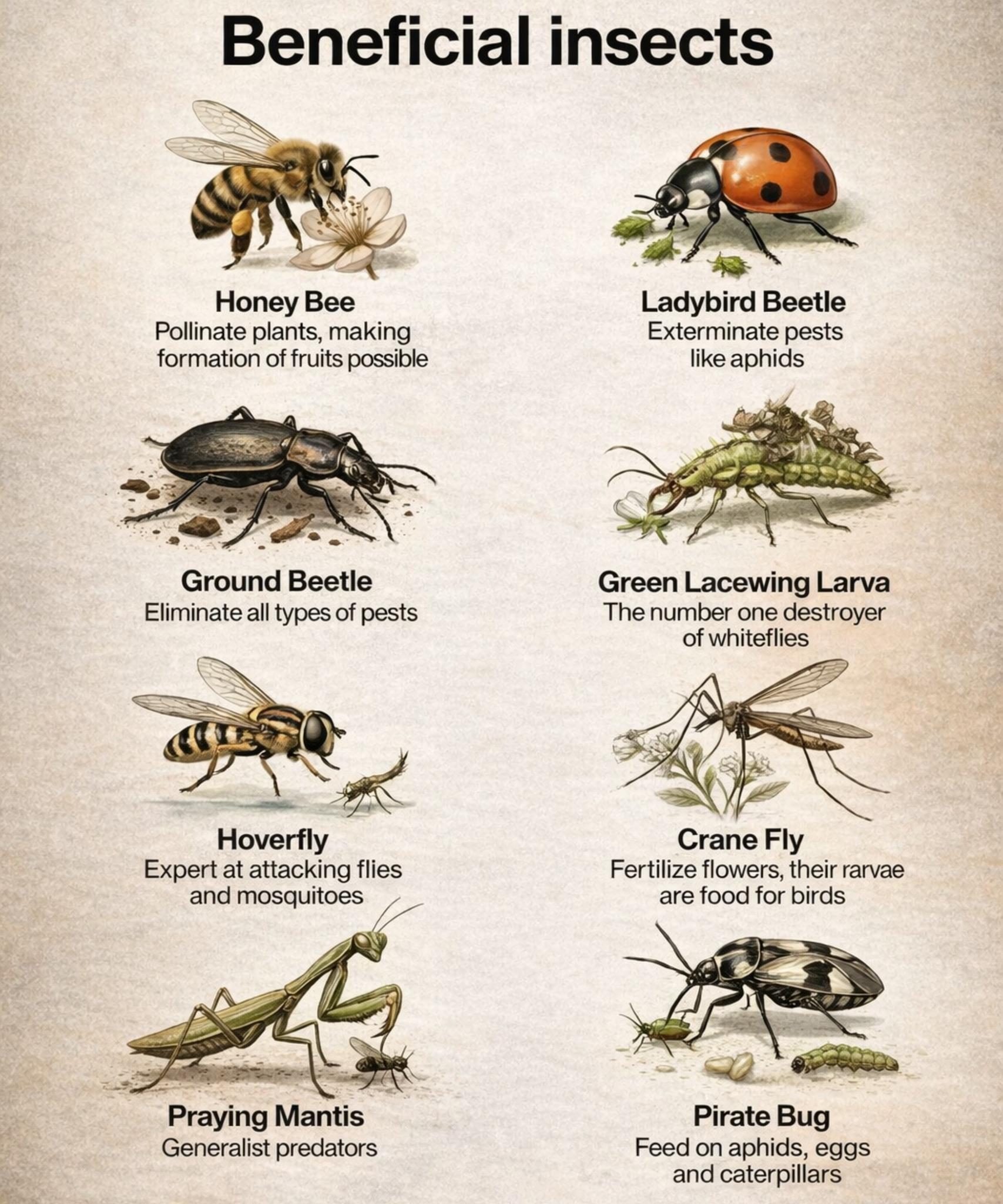 Beneficial insects play an essential role in pollination and natural pest control. Encouraging these insects helps create a balanced garden ecosystem while reducing the need for chemicals #Globalmuseum #insects #gardening