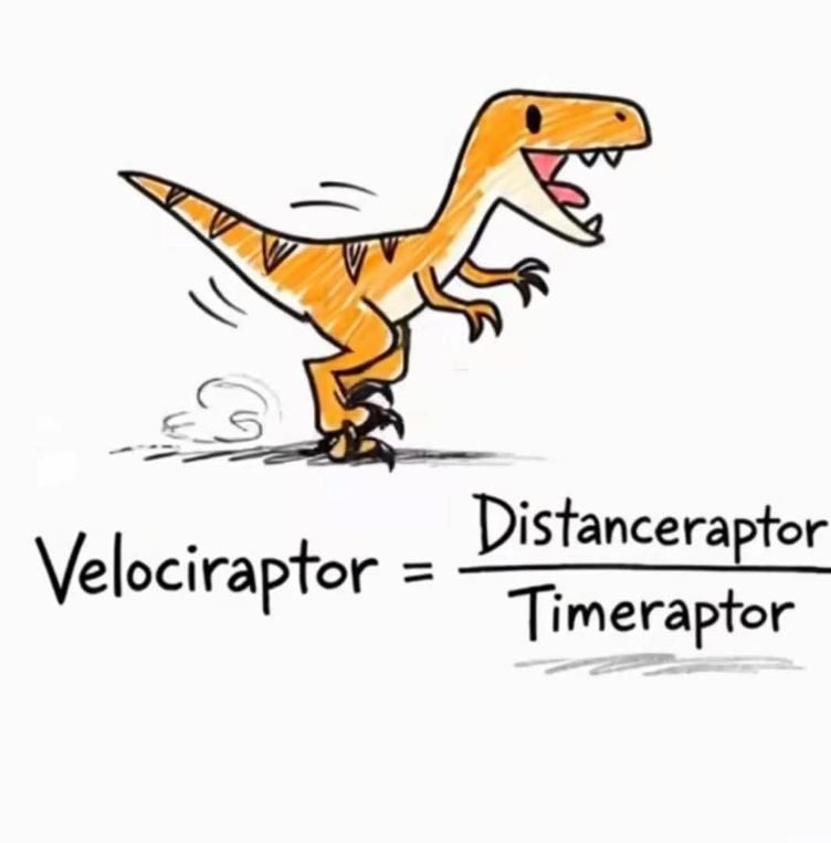 @lunch @StefanEJones SoVelociraptor = Distanceraptor / Timeto balance out the sides of the equation? -