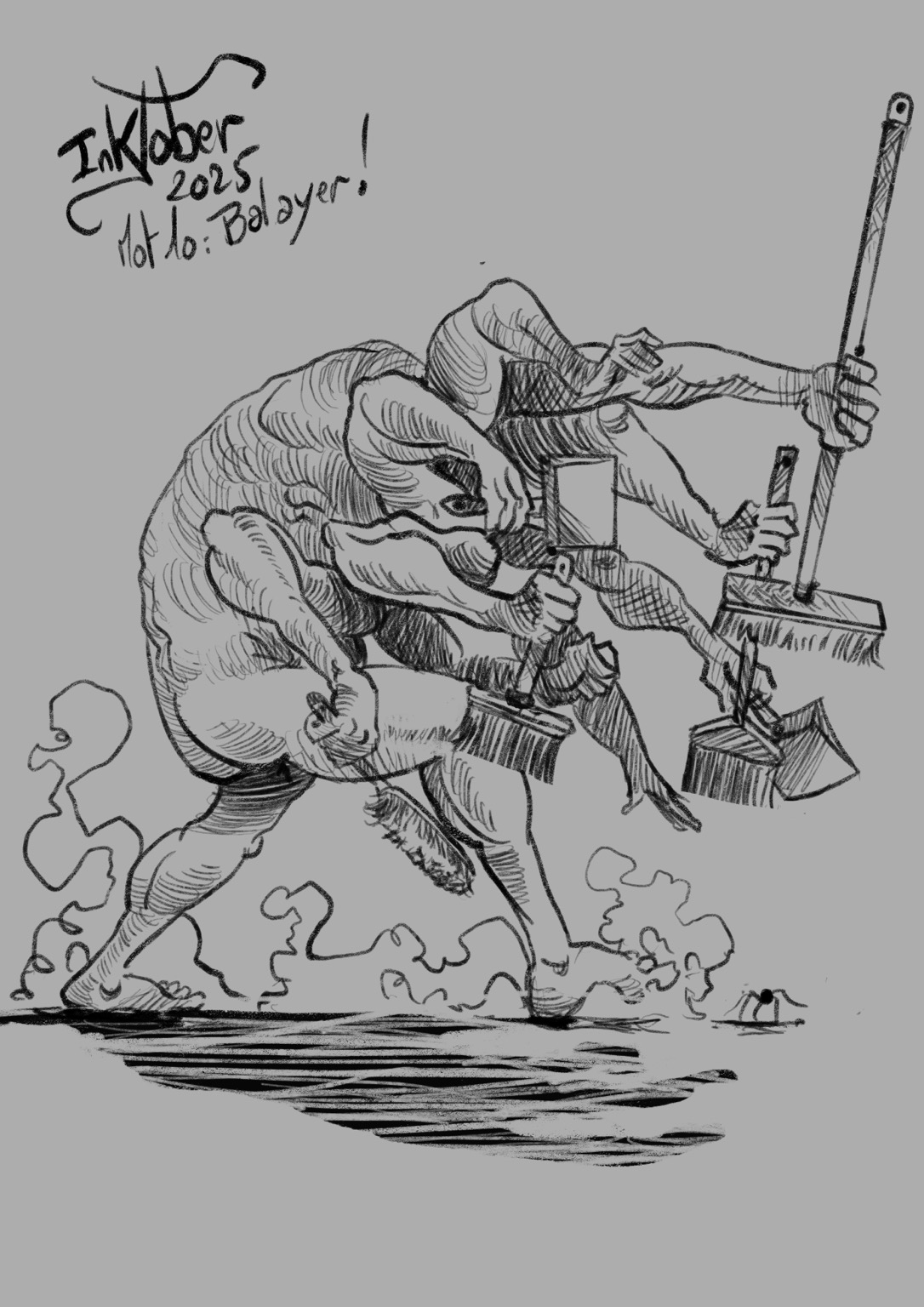 Inktober 2025Mot du Jour 10: balayer'nAu lieu de balayer devant sa porte.