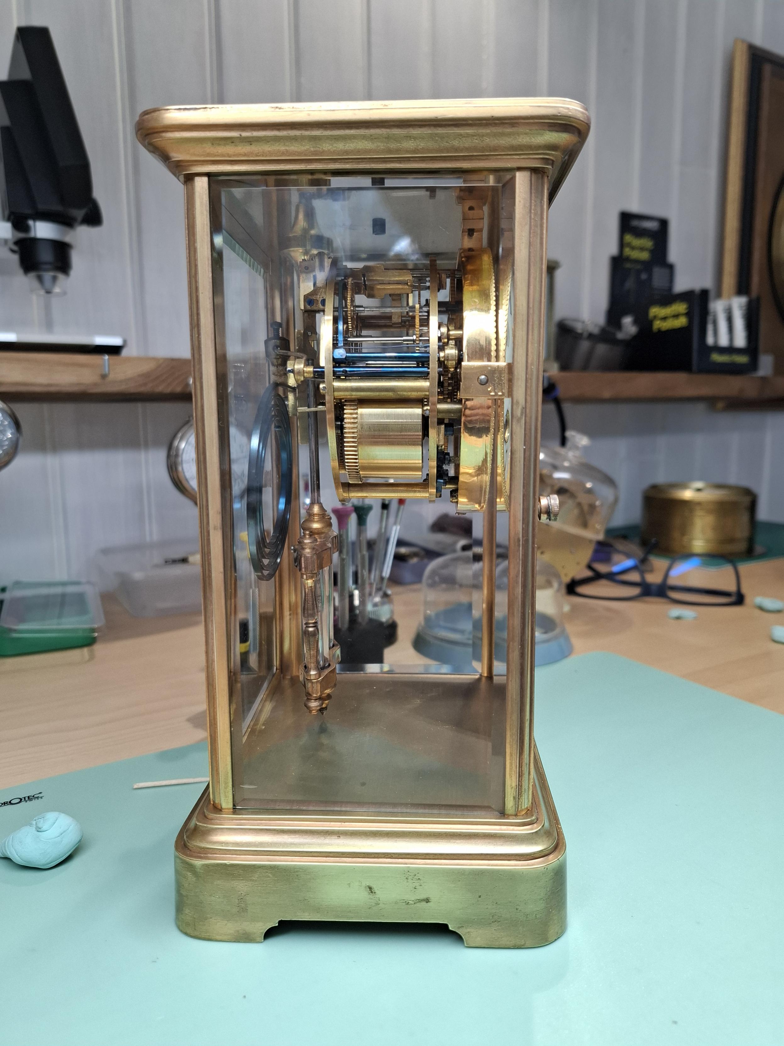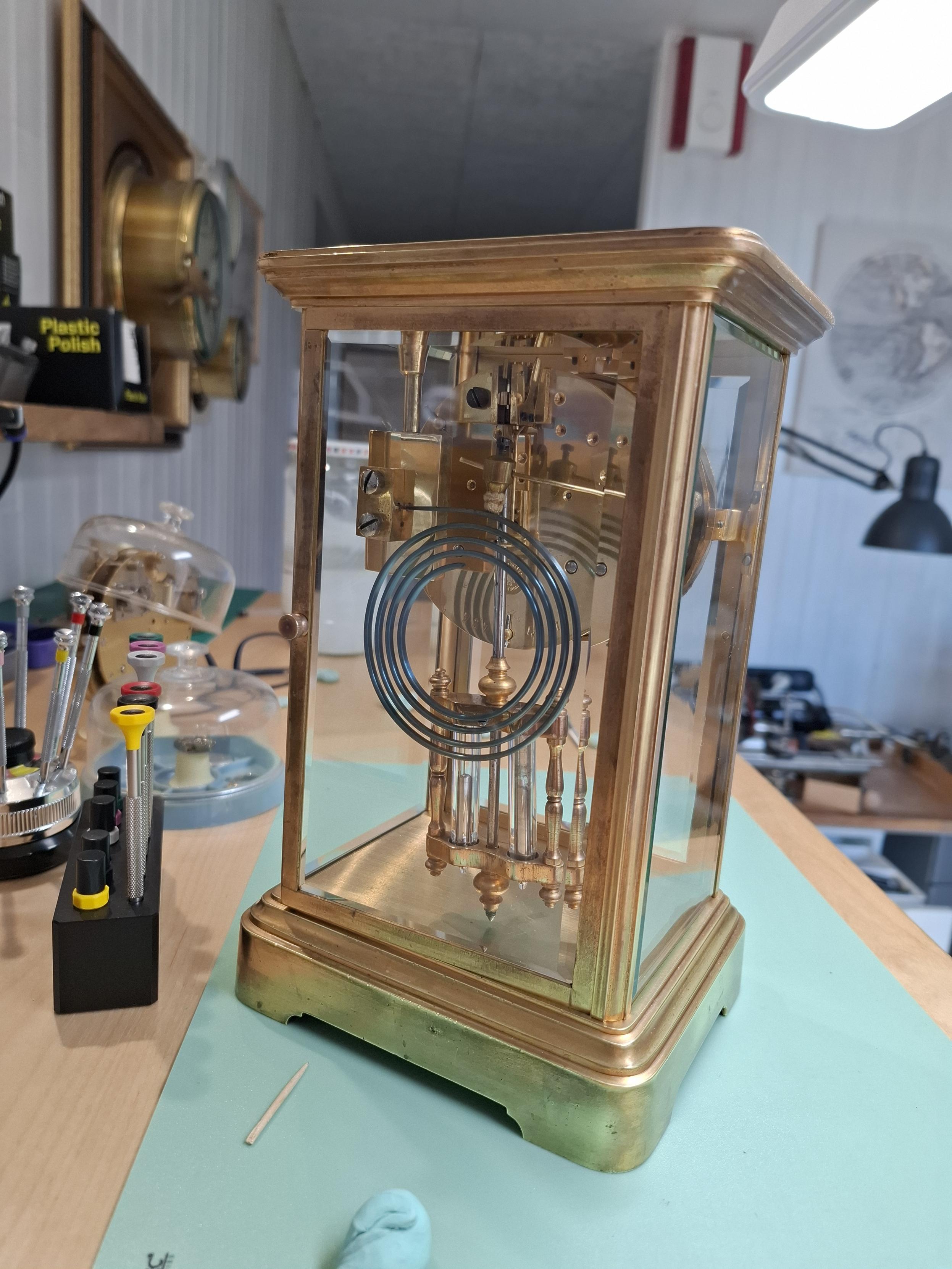 Le genre de pendule sympa à avoir chez soi .Pendule cage avec mouvement de Paris et sonnerie à râteau sur gong.