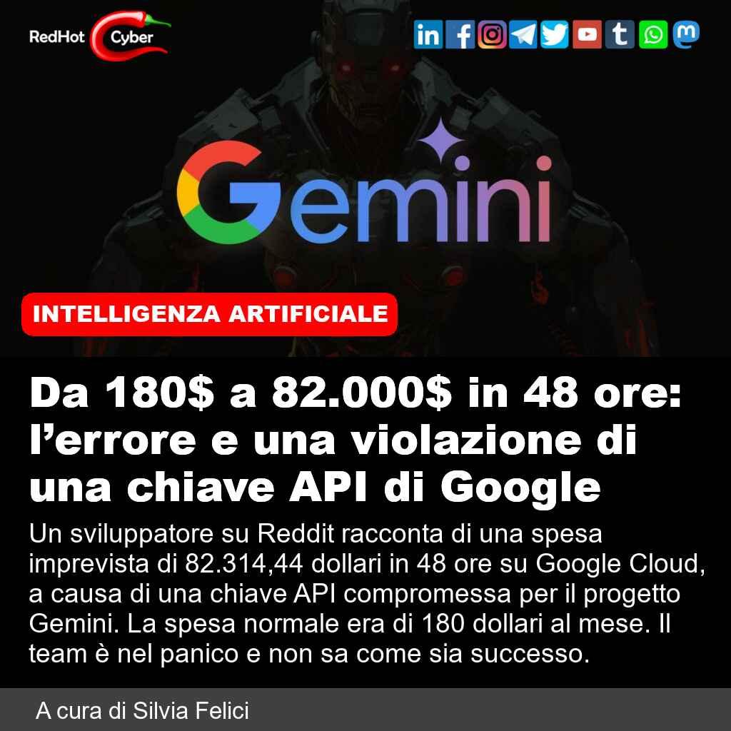 • Da 180$ a 82.000$ in 48 ore: l’errore e una violazione di una chiave API di Google