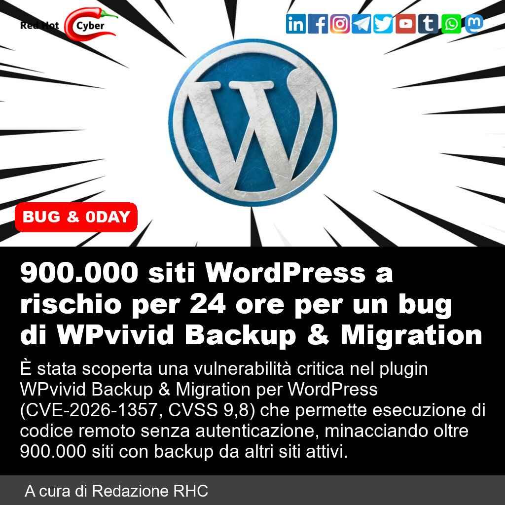 • 900.000 siti WordPress a rischio per 24 ore per un bug di WPvivid Backup & Migration