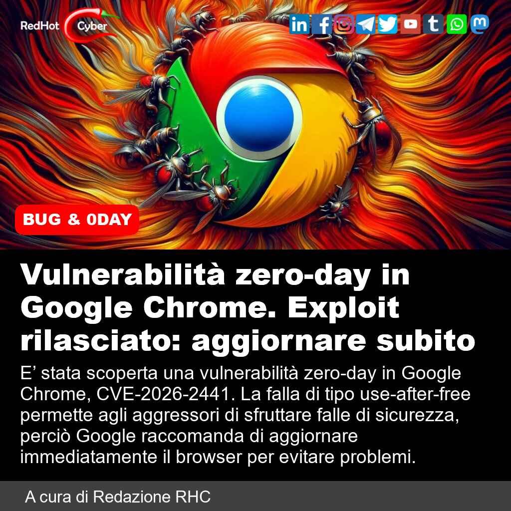 • Vulnerabilità zero-day in Google Chrome.
